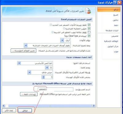 فعند اختيار هذا الأمر يظهر صندوق حوار خيارات برنامج اكسل، ونجد فيه